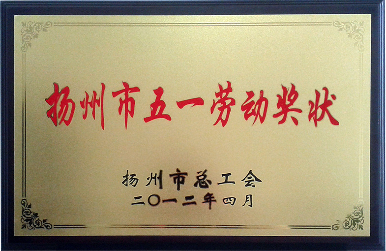 2012年度揚(yáng)州市五一勞動獎狀